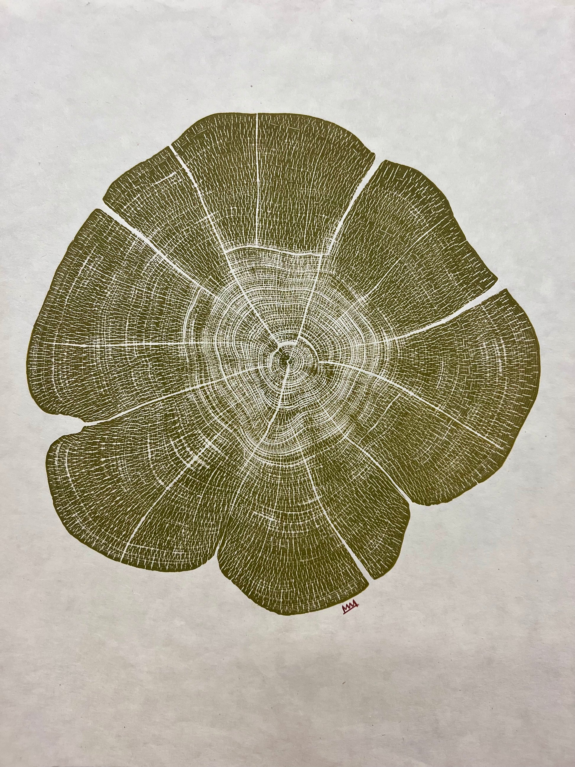 Each print is hand printed straight from the stump. So each is an original. This makes each print unique and one of a kind. Expect subtle differences in each print. These differences include orientation, color, gradient and subtle differences. Also, each one is printed after the order is placed. It may be 12-15 days before your order is shipped. Please be patient. It is coming. Thank you for your order!