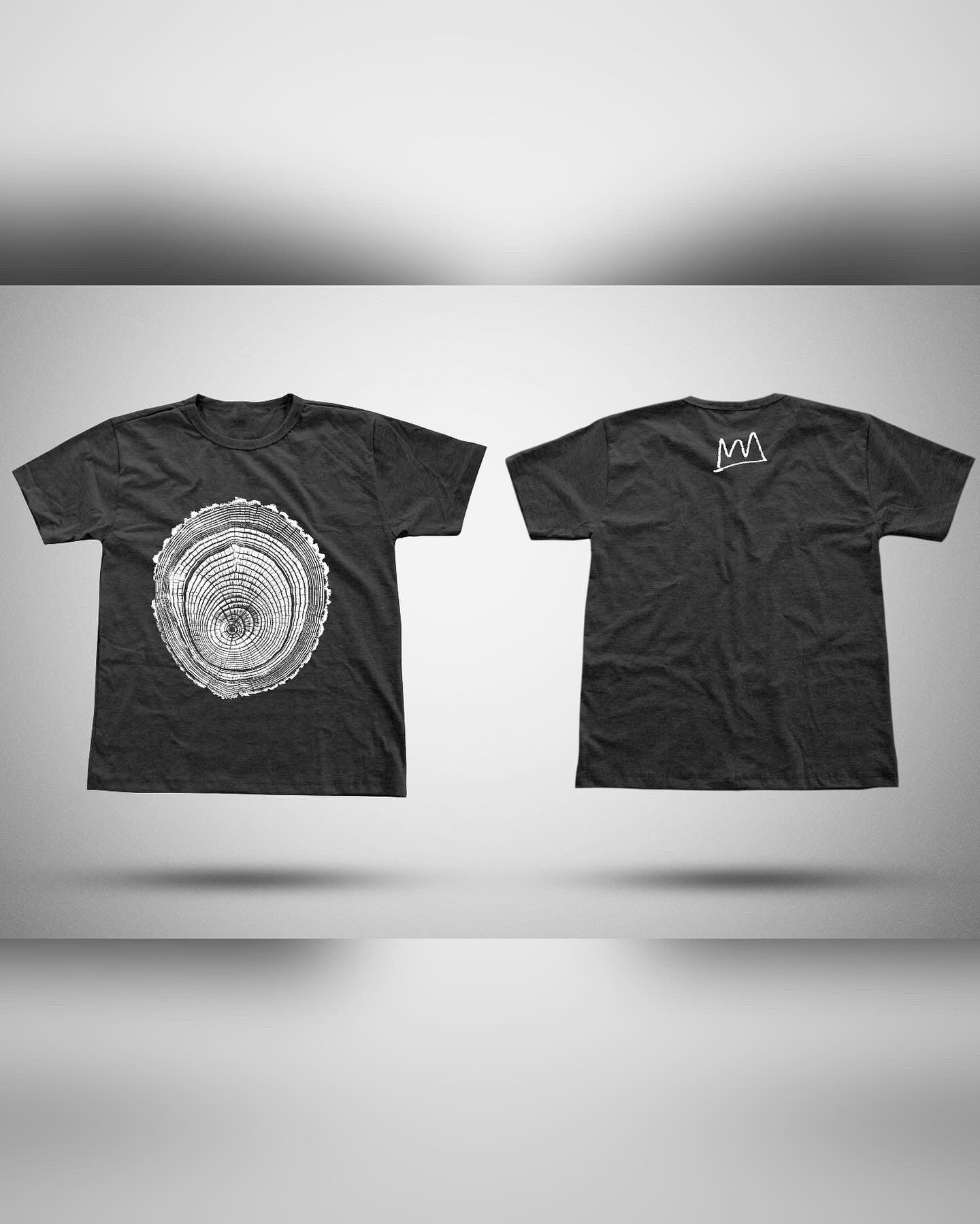 Tree on Front, Crown on back. Super high end Comfort Color shirts screen printed with a double run of ink. Silver ink on black shirt.