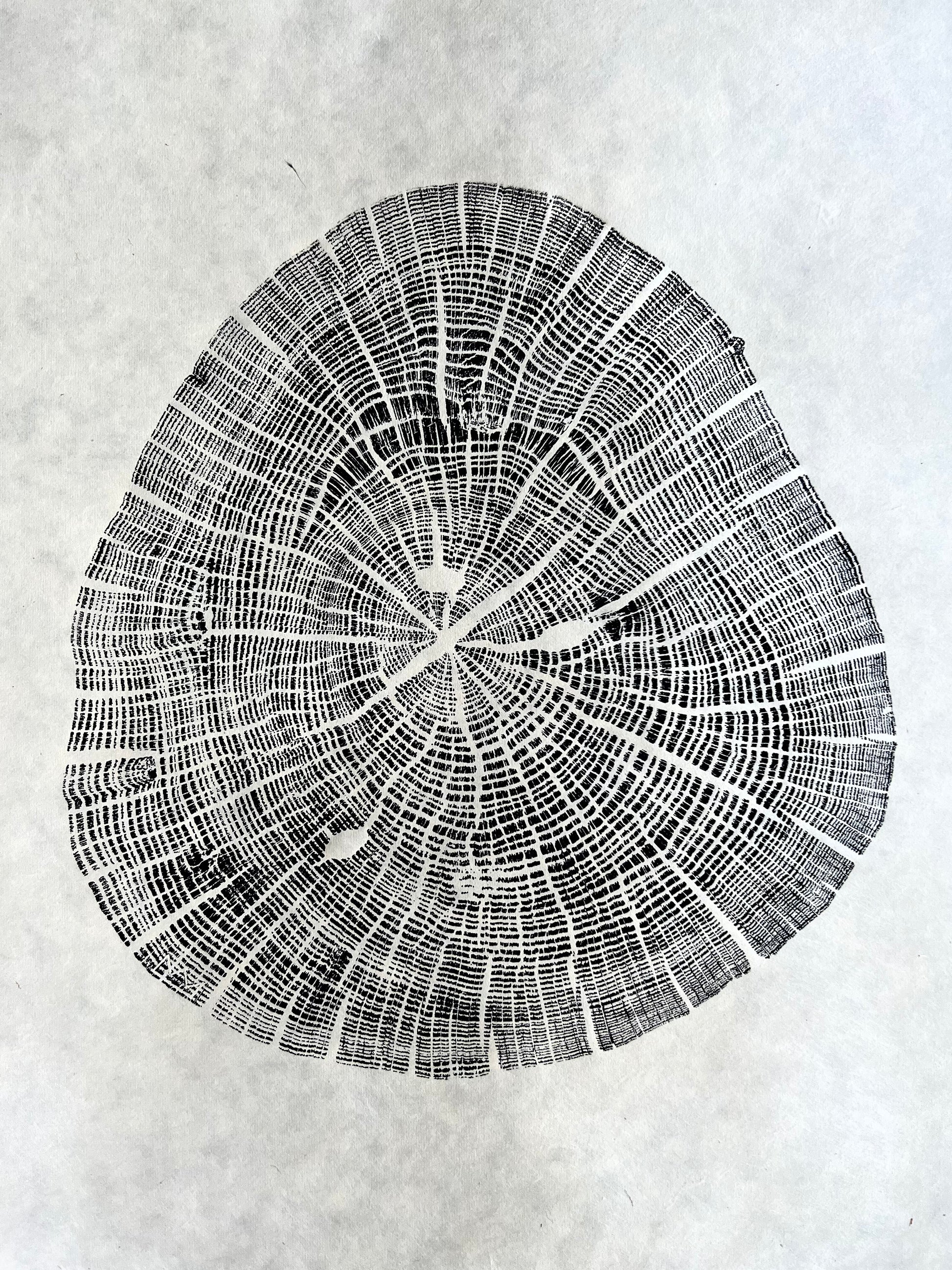 This is a print of a white oak that I found in the woods in Cashiers, NC. The wind had taken this one down. It had already begun its journey into decay, where it returns to the soil from where it came. But I cut a piece off from where it wasn’t rotting too badly. The bugs were all over it. It has the scars to show. And when I cleaned it off I noticed the rings. They tell the trees story. This tree saw some wild weather. It saw heavy rain, drought, extreme cold and of course ideal weather. That’s why I called this one weathered. Growing in the Appalachian Mountains it had a view!